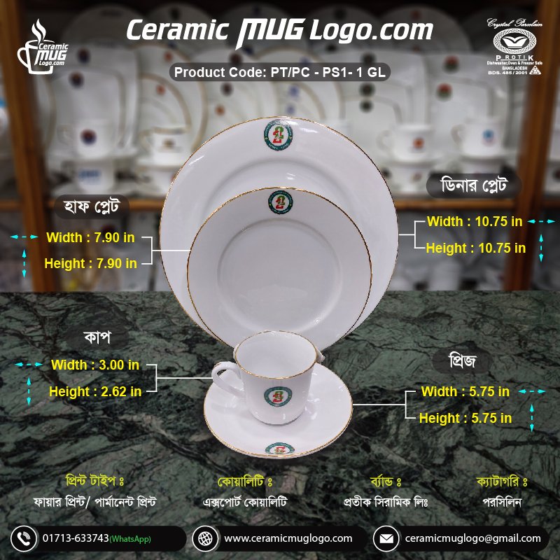 Custom Logo Printed Ceramic Dinner Set โ PT/PC โ PS1-1 GL