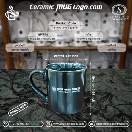 custom black porcelain mug, logo printed mug, government logo mug, defense promotional mug, corporate gift mug, fire print mug, premium ceramic mug Bangladesh, branded mug with logo, gold lining mug