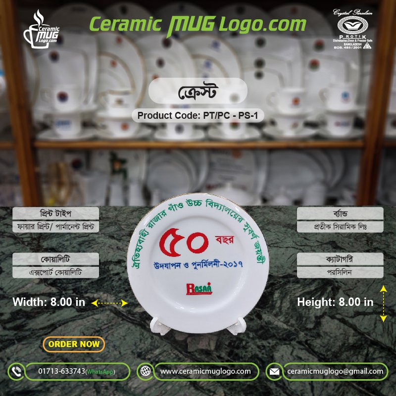Promote your organization, institution, or special event with our premium custom logo printed ceramic round crest, specially designed for schools, colleges, corporate branding, and commemorative programs. Made from high-quality porcelain ceramic with a smooth glossy finish, this round crest is ideal for anniversaries, award ceremonies, conferences, and official recognition displays.